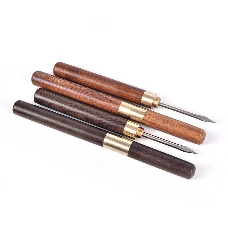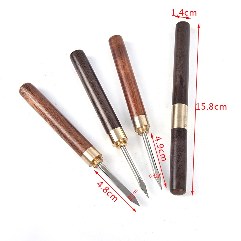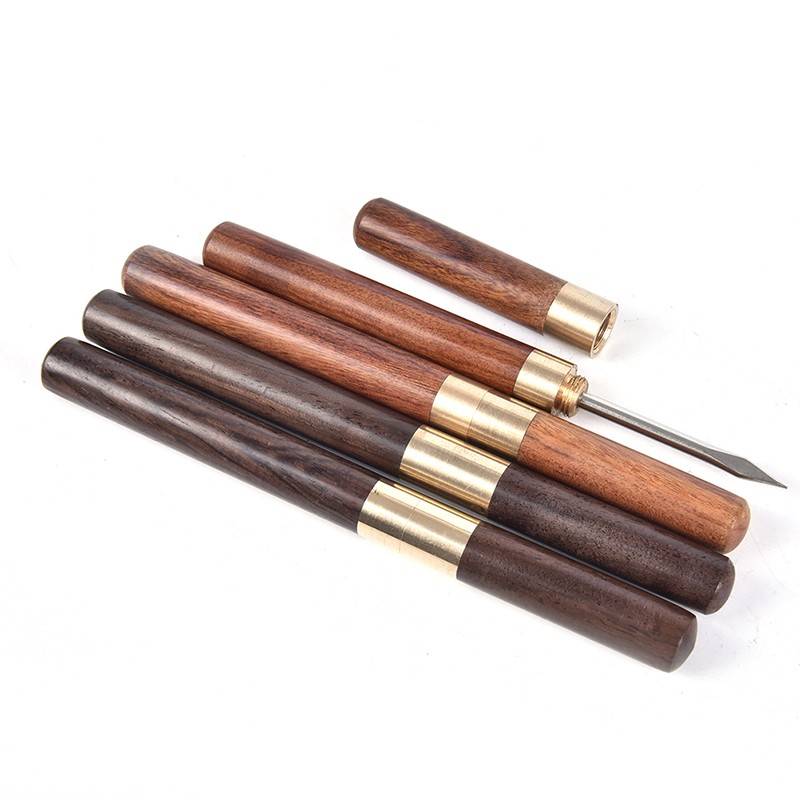 Faca de chá: set de agulha de faca de chá de aço inoxidável com punho de madeira