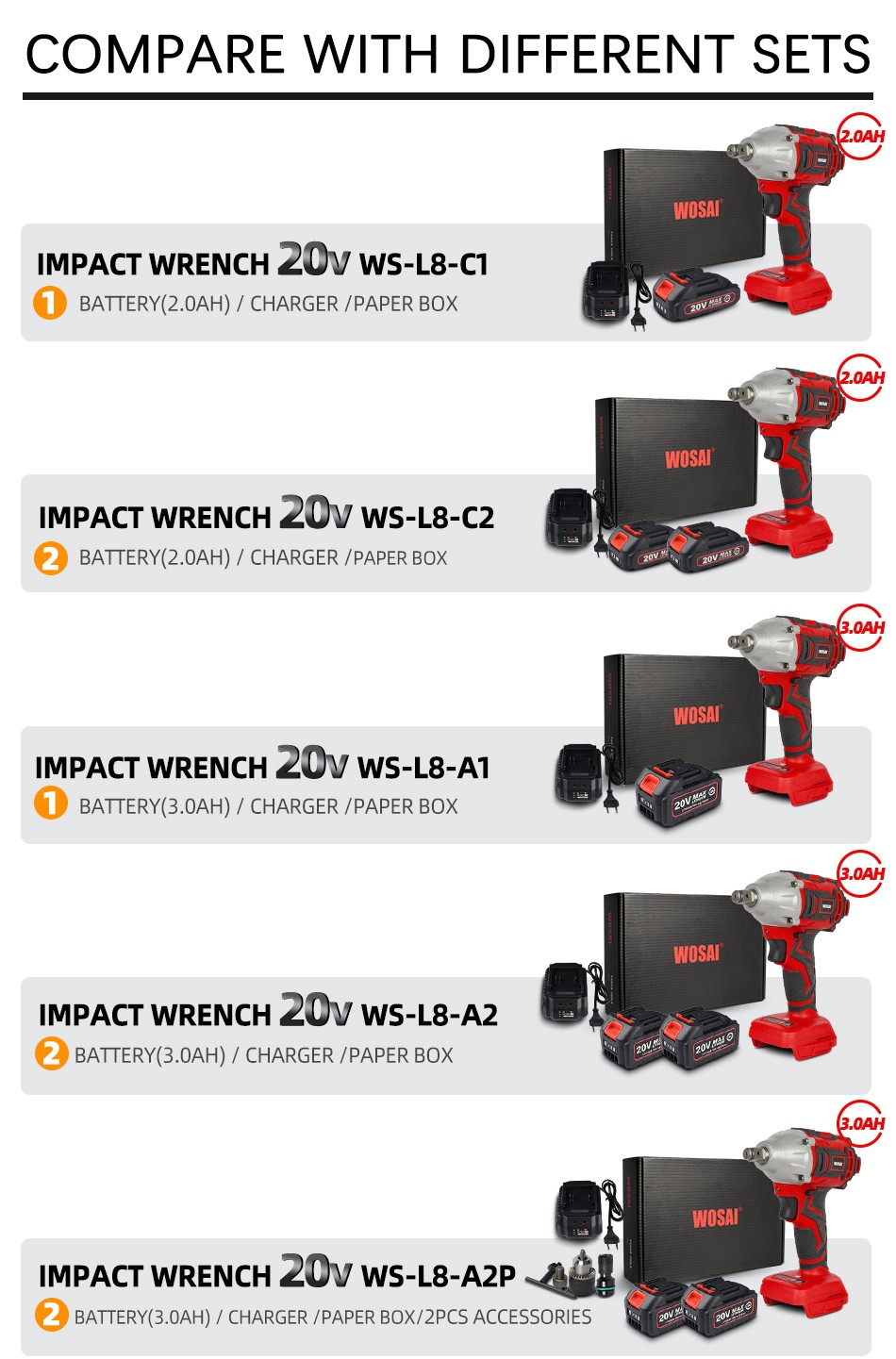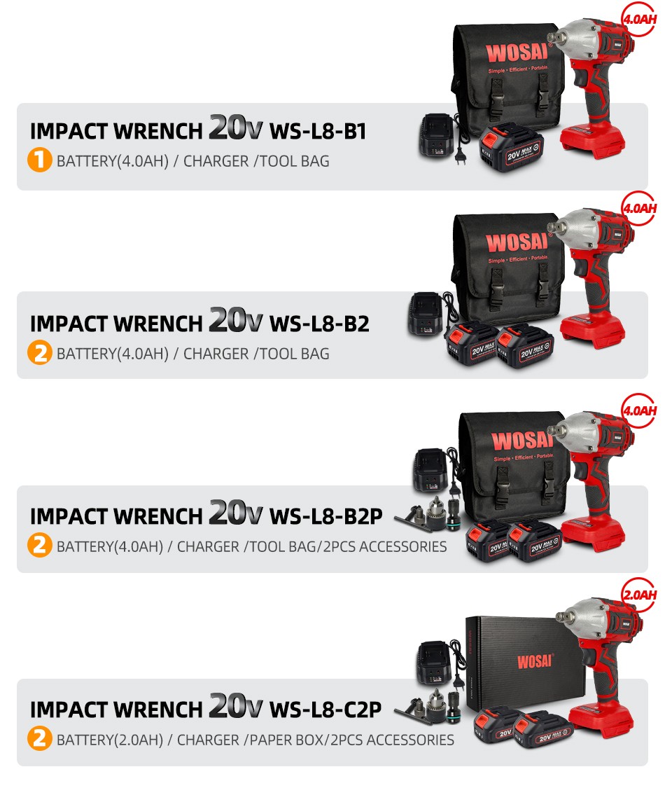 Wosai 20V Sem Fio Sem Escova Elétrica Chave De Impacto Chave De Soquete 320N. M Bateria Li-Ion Mão Broca Instalação