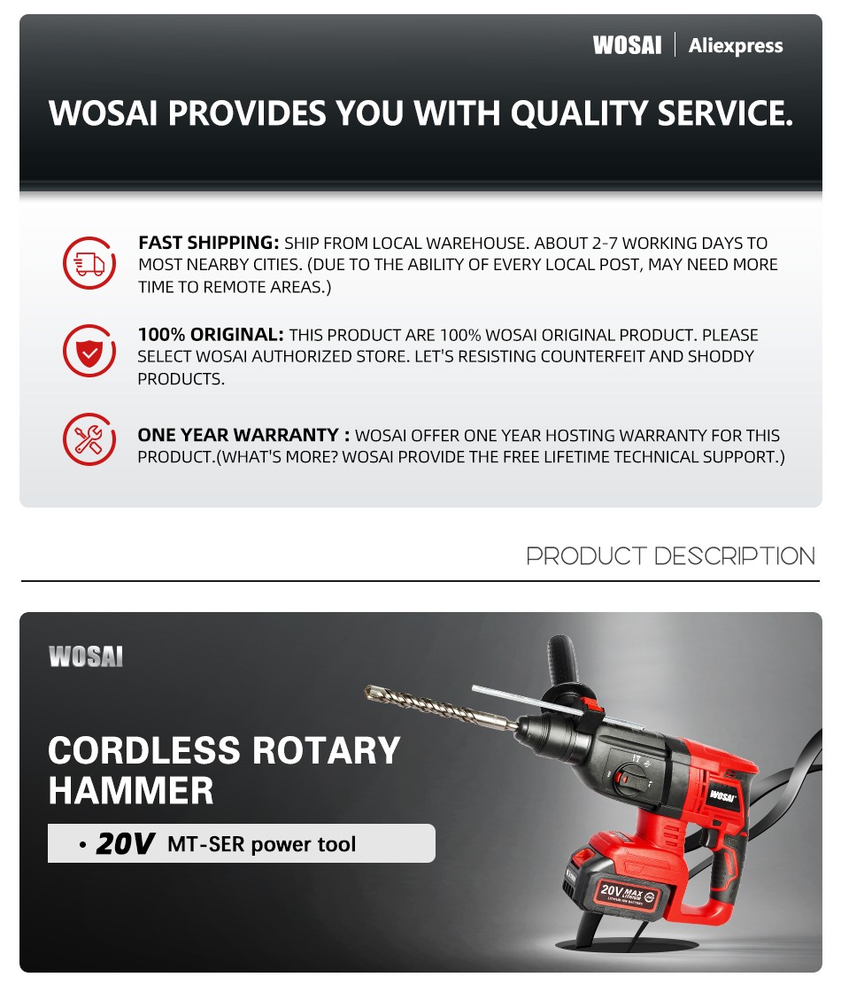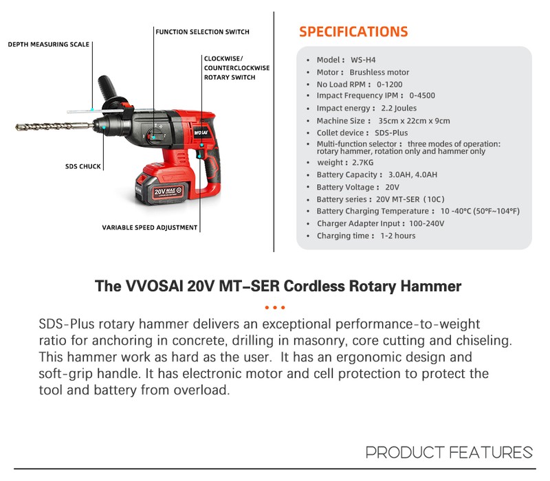 Wosai 20V Elétrica Furadeira De Impacto Martelo Rotativo Sem Escova Do Motor Sem Fio Furadeira Elétrica Picareta Elétrica Para Interruptor Livremente