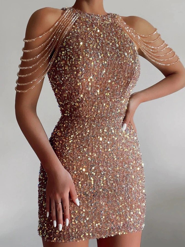 Yidingzs Fora Do Ombro Vestido De Lantejoulas Ouro Curto Festa Bodycon Vestido Feminino Sexy Vestido De Noite 18607