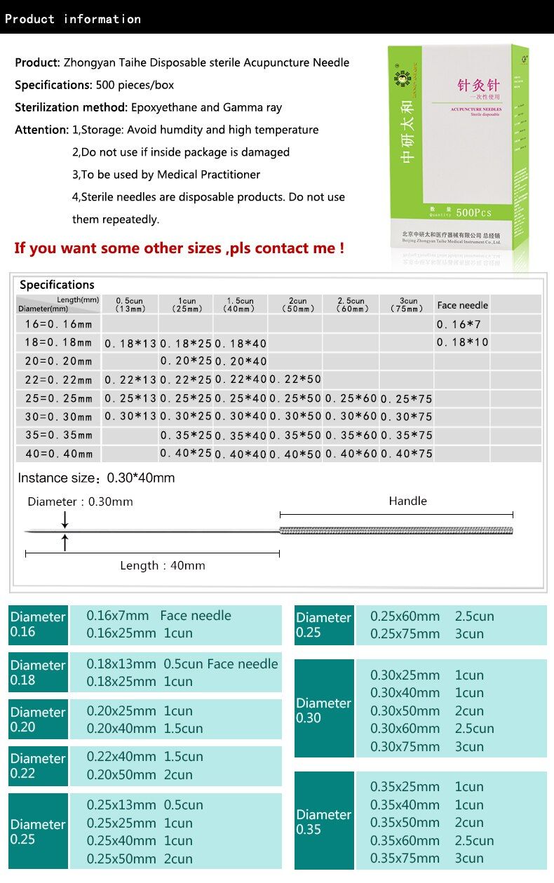 Zhongyan Taihe-Agulhas De Acupuntura Com Tubo., Agulhas Esterilizadas Descartáveis De Todos Os Tamanhos, Para Massagem E Beleza. Frete Grátis. 500 Unidades.