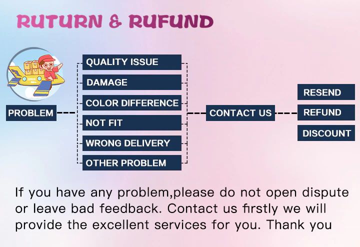 1.Pls bize 4 yıldız 1 yıldız vermeyin. Ürünler için herhangi bir sorunuz varsa bizimle iletişime geçebilirsiniz, size yardımcı olmak için elimizden geleni yapacağız. Yeniden göndermek veya iade veya size indirim ve hediye vermek.