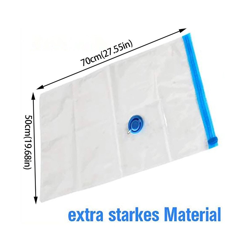 The different sizes in the vacuum bag set from 60 x 80 cm over 70 x 100 to 120 x 80 cm with small and large vacuum bags cover your need for travel, hanging storage, warehousing and storing of your clothes.