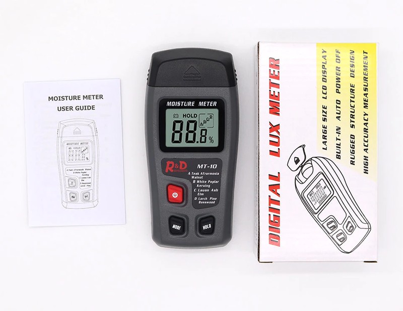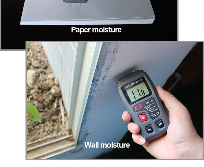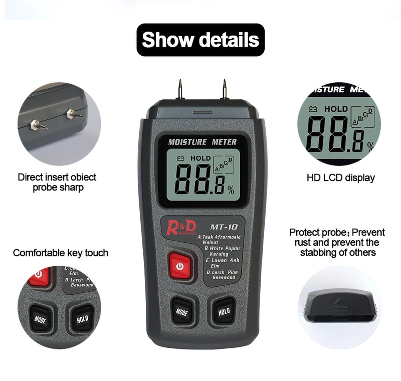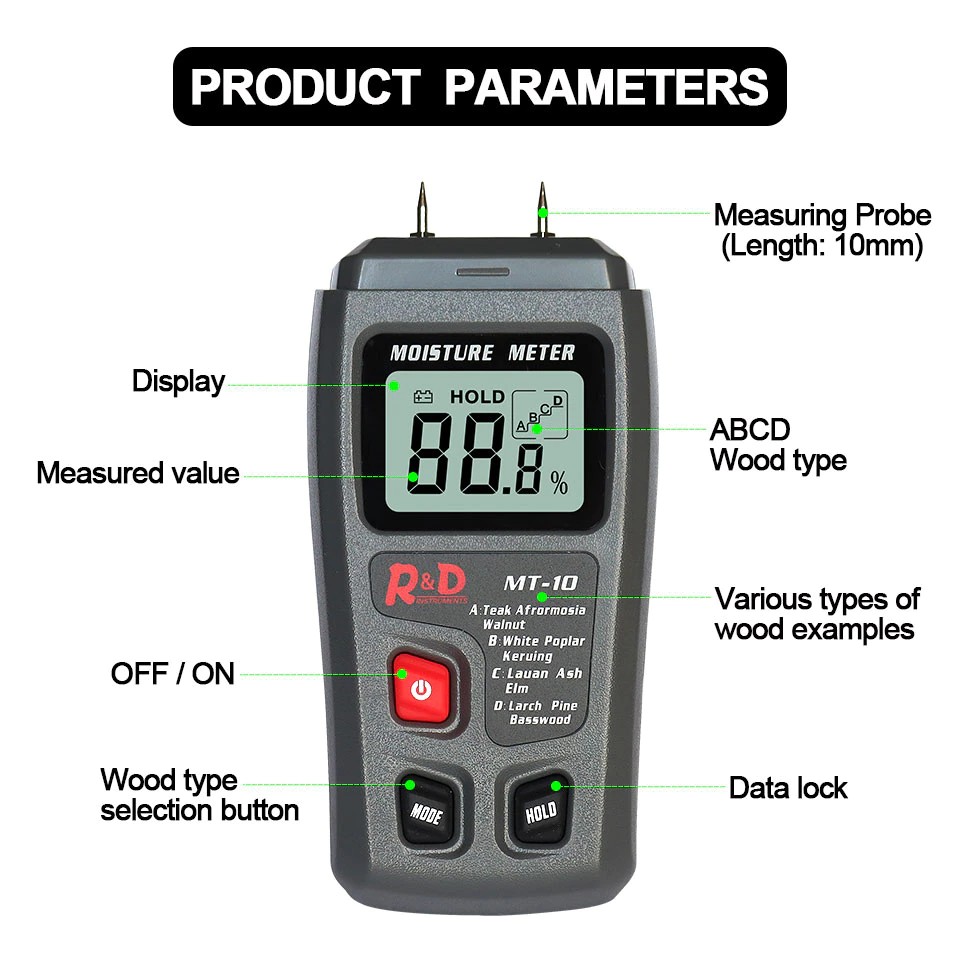 R &Amp; D Mt-10 Emt01 Misuratore Di Umidità Del Legno Tester Di Umidità Del Legno Igrometro Rilevatore Umidità Del Legname Tester Digitale Di Densità Dell'Albero Grigio
