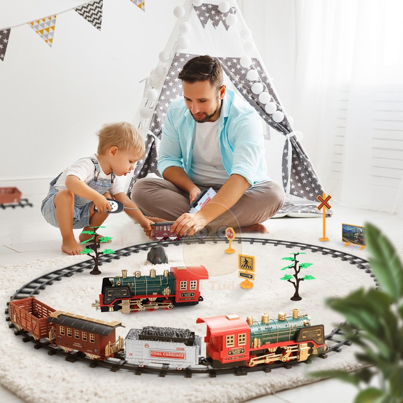 Remote Control Track Train Car Classical Simulation Water Steam Electric Railway Set Gift Educational Toy For Children