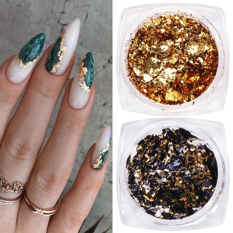 1 Коробка Золотых Блестящих Хлопьев Неправильной Формы Алюминиевая Фольга Блестки Для Ногтей Хромированная Пудра Зимний Маникюр Украшения Для Ногтей Ly1858-1