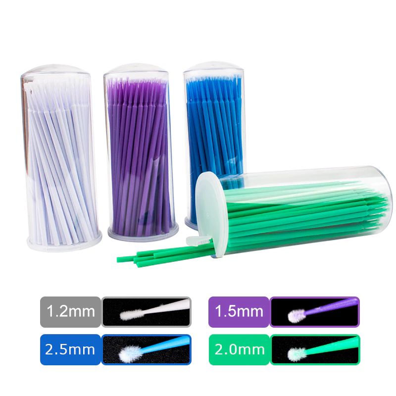 Микро-аппликаторы щеточки состоят из неворсовых, невпитывающих волокон, расположенных в сферической форме. Оно выпускает решения в туспензии, исключая капание, проливание и отходы. Гибкая часть позволяет точно применять в труднодоступных местах.