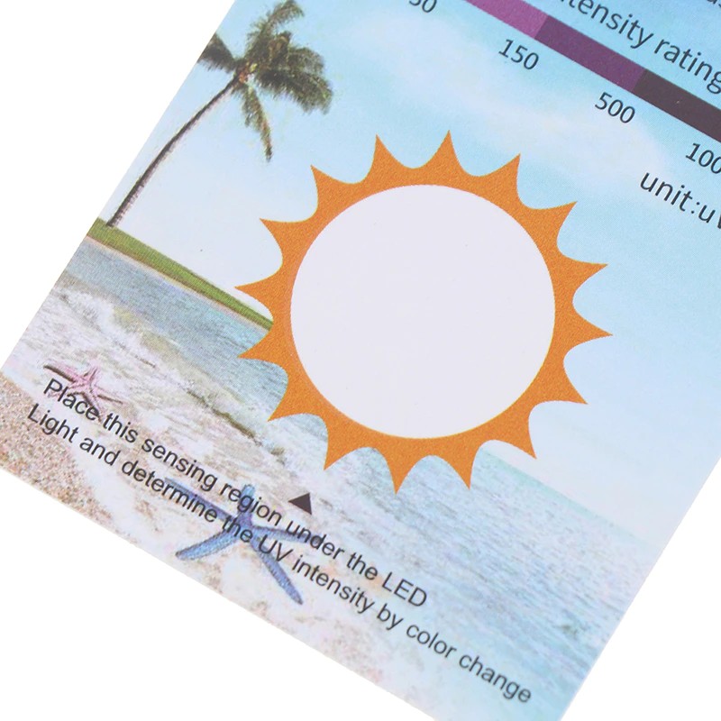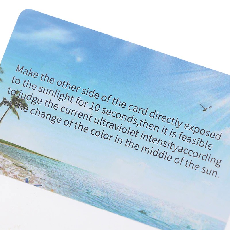 Карта содержит тест-полоски цвета UVB, которые могут определять уфв-прочность трансформации окружающей среды.