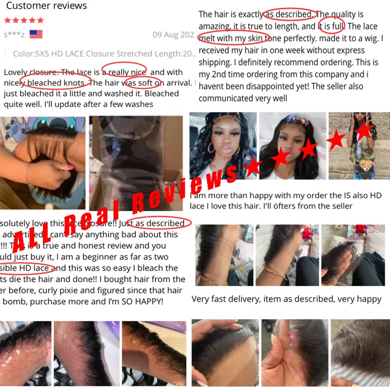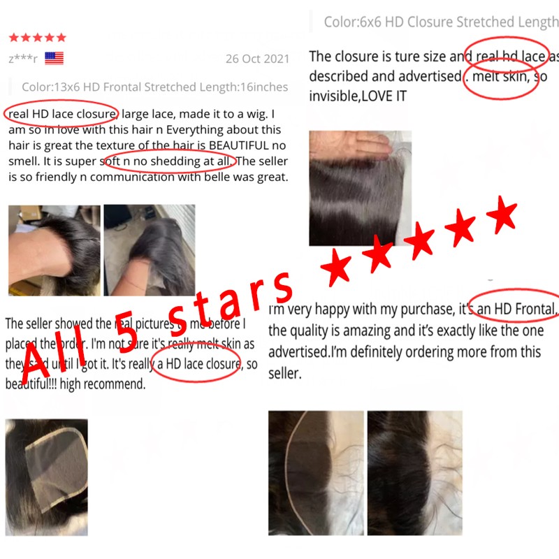 13x6 HD Кружева Фронтальные невидимые HD прозрачные кружева расплавленные шкуры 6x6 5x5 HD Кружева Закрытие человеческих волос бразильские волосы Remy Предварительно выщипывают