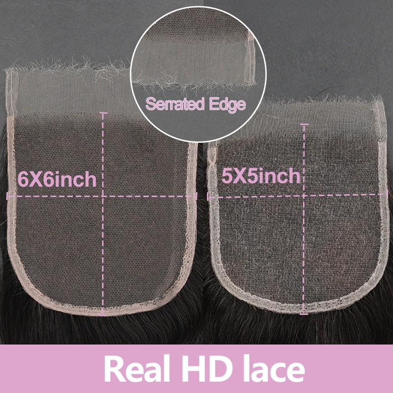 HD кружевное стиль 3: 6x6 HD закрытие кружева