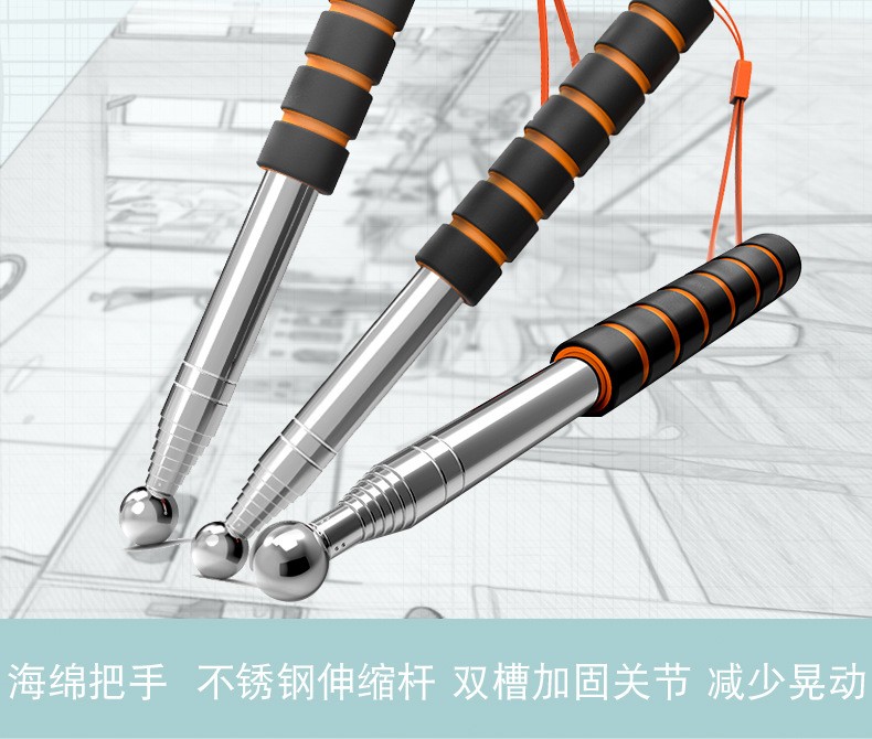 Утолщенный Телескопический молоток для обнаружения удочки, 160 см, прокручивающийся барабан инструмент для проверки звука обучающая палочка, строительные инструменты