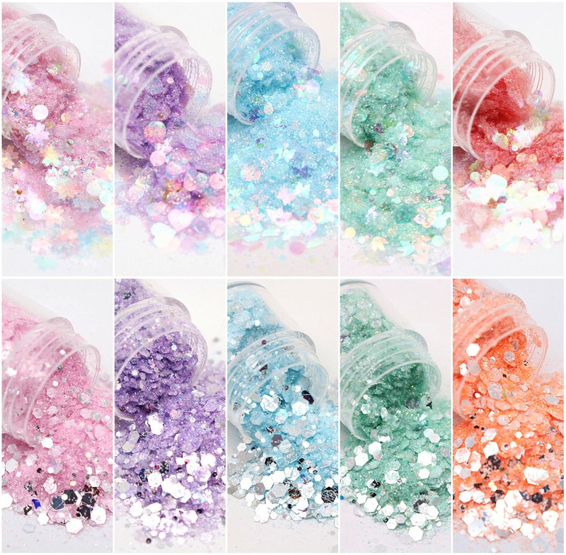 1 банка смешанных блесток для дизайна ногтей гексагональная пигментная пудра блестки хлопья для макияжа лица Аксессуары для маникюра 10 мл