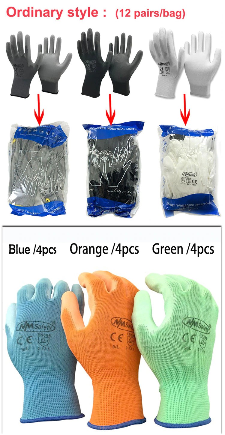 24 шт./12 пар, защитные рабочие перчатки из ПУ нейлона