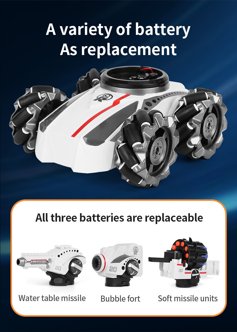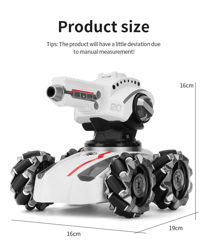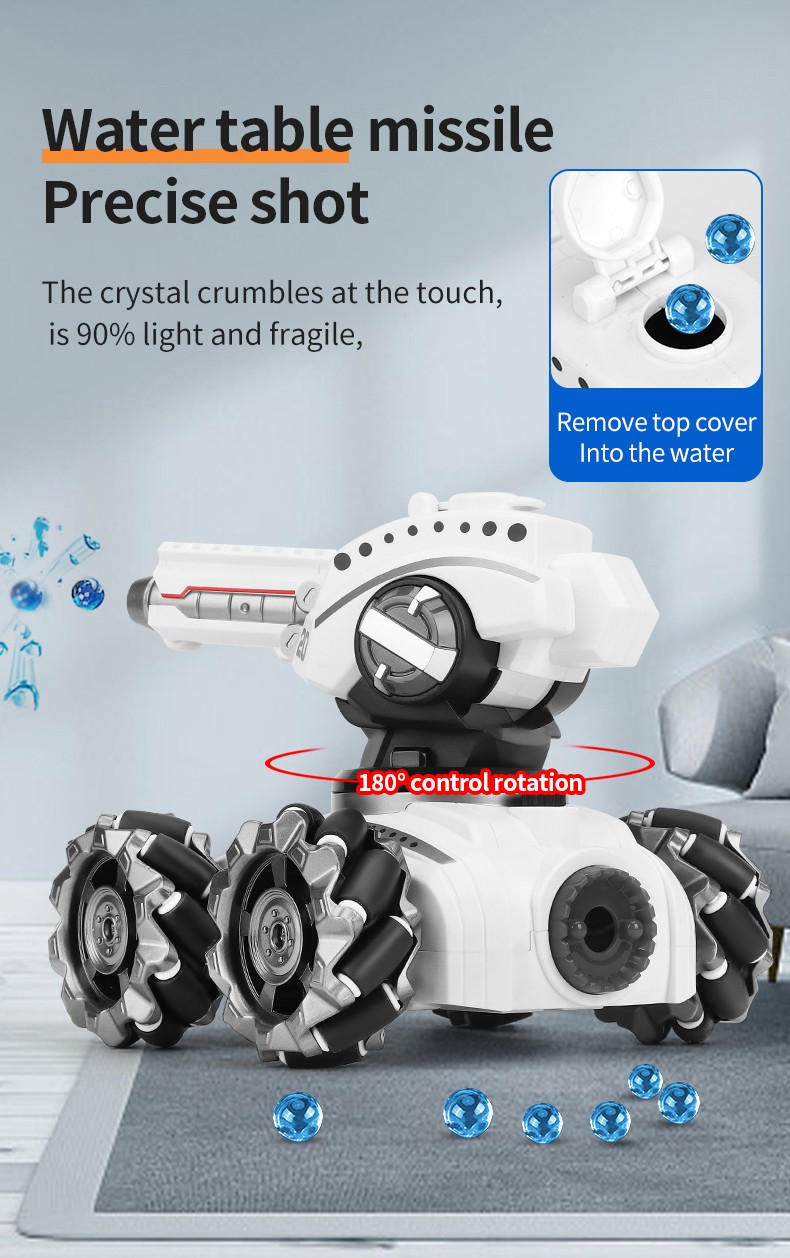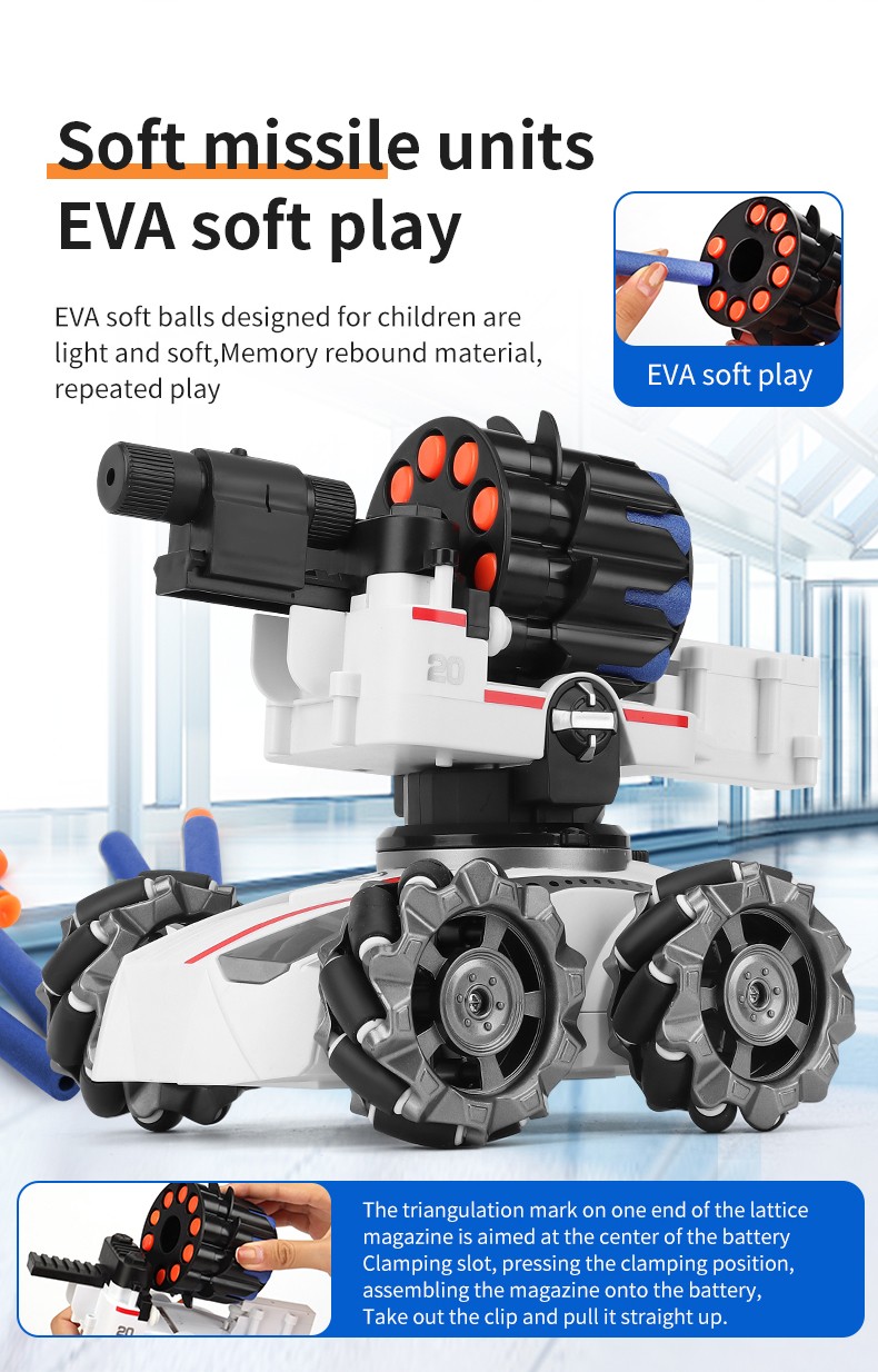 Этот продукт использует технологию дистанционного управления 2,4G, которая не мешает подобным продуктам. Сильные внедорожные скалолазания, не ограничиваются местом проведения. Моделирование структурного управления, револьвер может быть разобран и заменен, гибкое управление, различные функции, музыкальный светильник, вперед и назад, поворот влево и вправо, вращение на 360 °