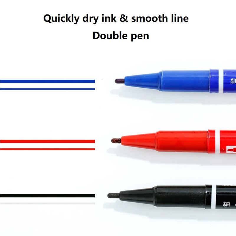 Цвет корпуса ручки: синий, красный, черный Цвет чернил: синий, красный, черный Размер: около 14 см Материал: пластик Толщина наконечника: 1,0 мм и 0,5 мм Посылка включает в себя: 10 шт. двойной маркер 100% новый и высокое качество Посылка: 3 шт. маркера в упаковке для доставки упаковано в пластиковый пакет.