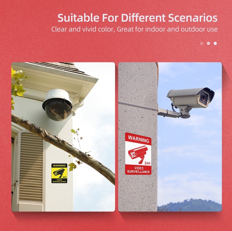 Наклейка Предупреждение сигнализацией для камеры наблюдения, водонепроницаемая, матовая, 4 шт.