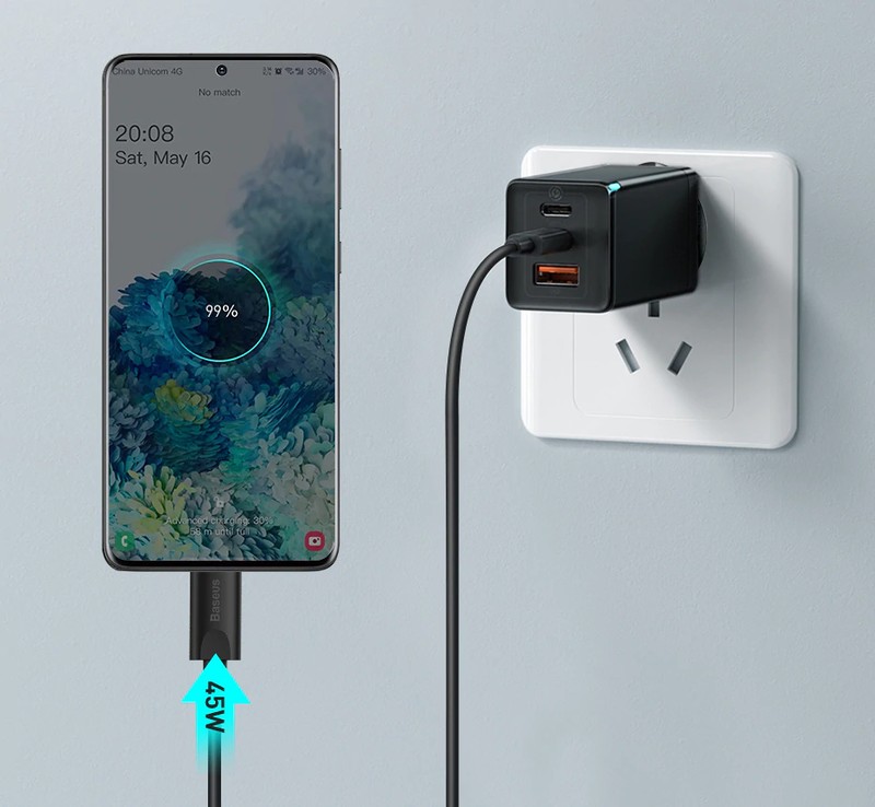 (2) Поддержка 45W быстрая зарядка для Samsung