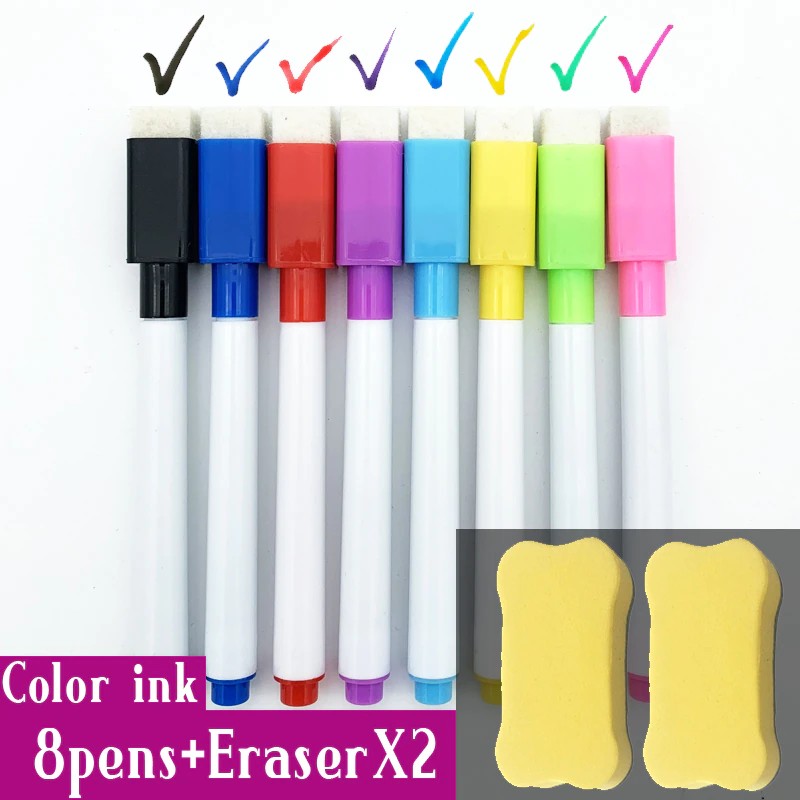Маркеры для белой доски, 8 шт./лот, цветные черные, со встроенным ластиком