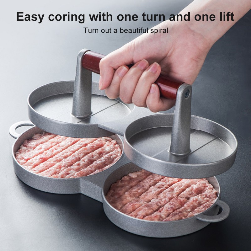 2. Просто загрузите бургер с мясом, рыбой или Овощной смесью и нажмите на ручку, чтобы произвести идеальный Толстый Круглый бургер.