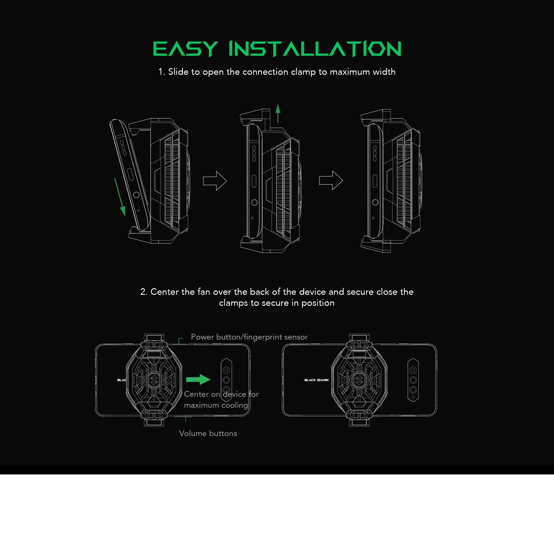 Проектированный с наибольшим количеством материалы премиум-класса, Черная Акула Funcooler 2Pro большой контактной поверхности и бесшумная 7 лопасти вентилятора обеспечивают мгновенной мощности охлаждения. Наш интеллектуальный контроль температуры автоматически регулирует скорость вращения вентилятора на лету.