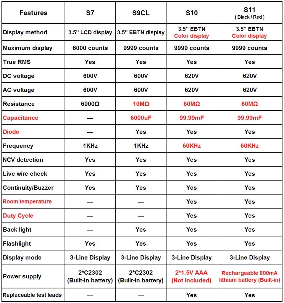 Диапазон измерения сопротивления: S7: 6K OHM / S9CL: 10M OHM / S10-11: 60M OHM
