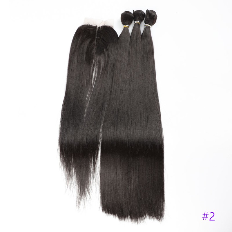 Пряди из синтетических волос с закрытием все в 1 прямые синтетические пряди для плетения волос для женщин Weavon 3 пряди с закрытием