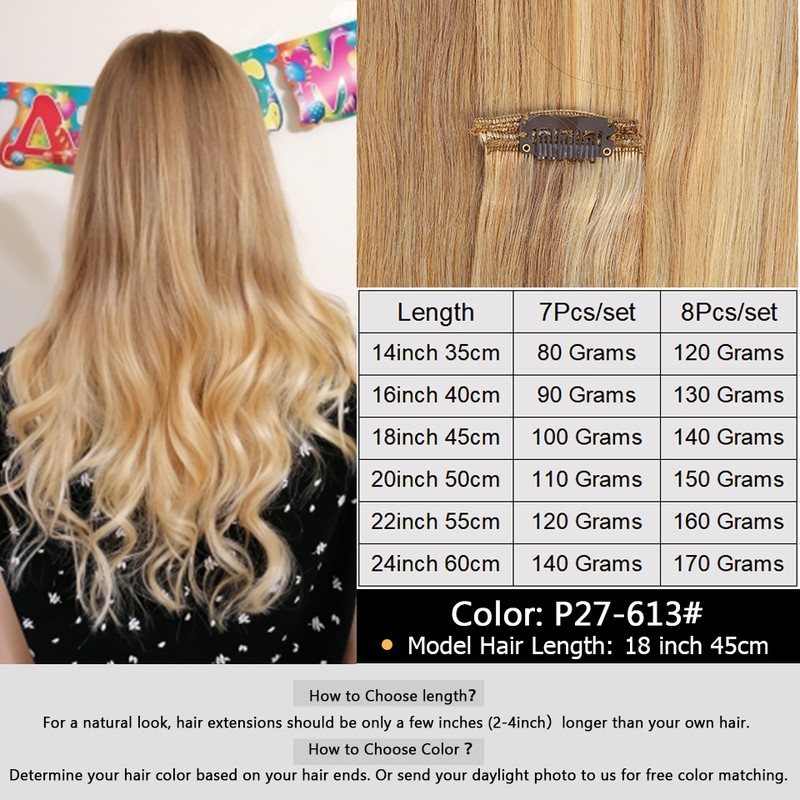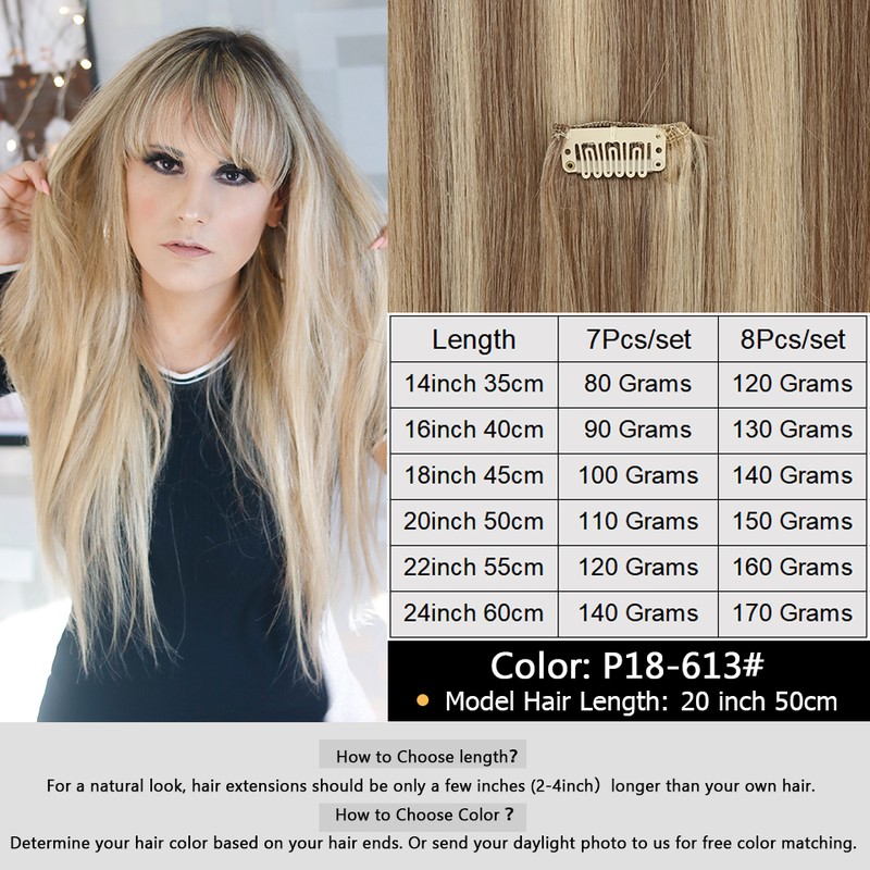 Изделие: волосы для наращивания на заколках; Комплект из 7/8 шт.