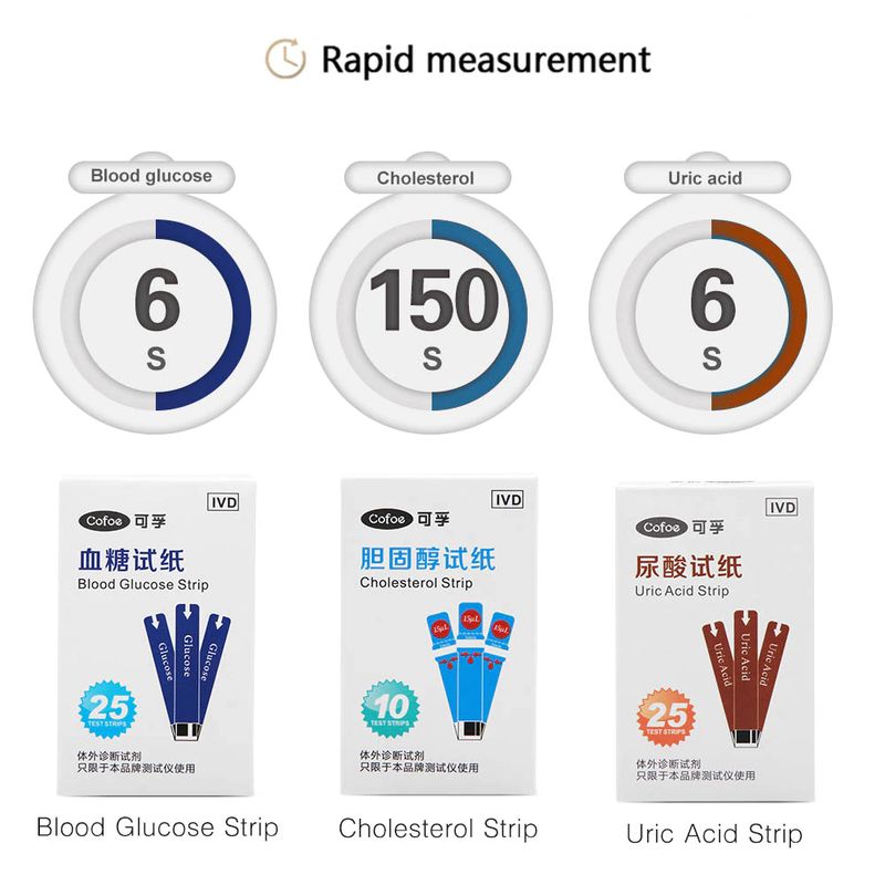 Тест-Полоски И Ланцеты Cofoe 3 В 1 Для Определения Холестерина, Глюкозы В Крови И Мочевой Кислоты, Детектор Только Для Rf-Xt-01, Забота О Здоровье