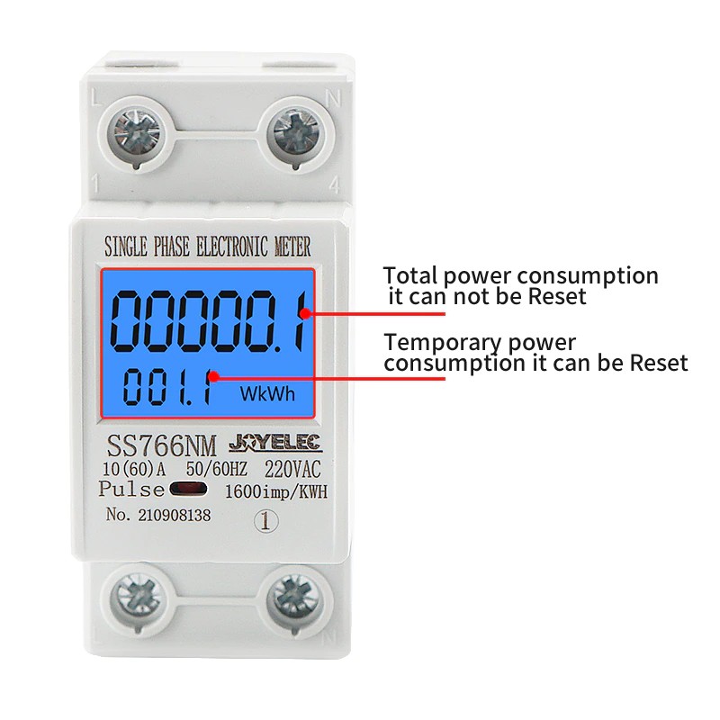 Счетчик-это многофункциональный дисплей, общая энергия кВт · ч, временная энергия кВт · ч, реальное напряжение, реальный ток, реальная мощность с помощью автоматического пропуска.