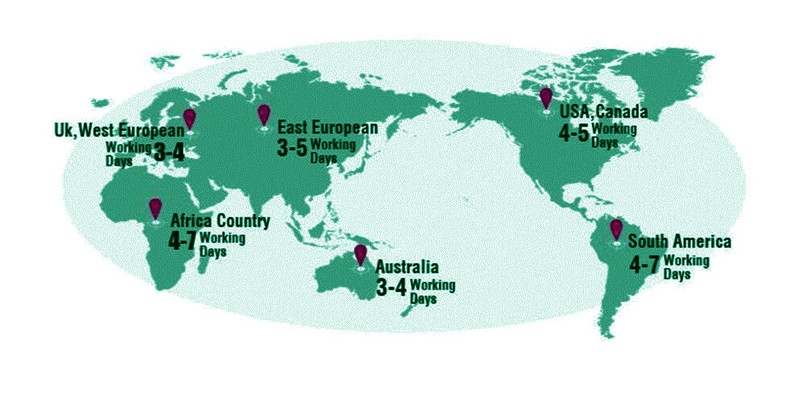 Если вы хотите поторопиться, вы можете выбрать DHL или Fedex (от 3 до 7 рабочих дней)