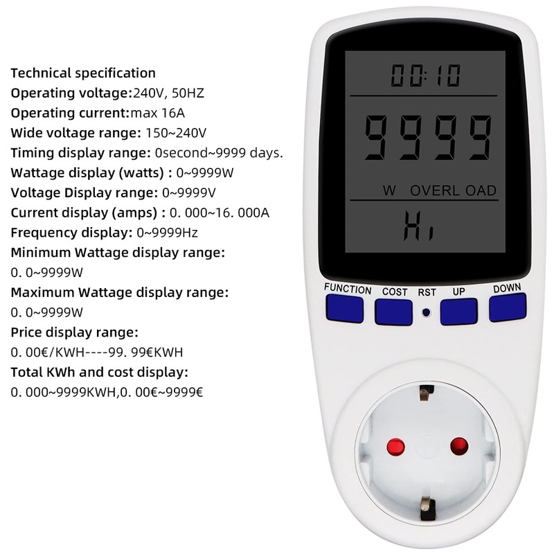 Цифровой ваттметр с европейской вилкой, ваттметр, анализатор мощности электронный измеритель мощности автоматический перевод мощности в кВтч, скидка 30%