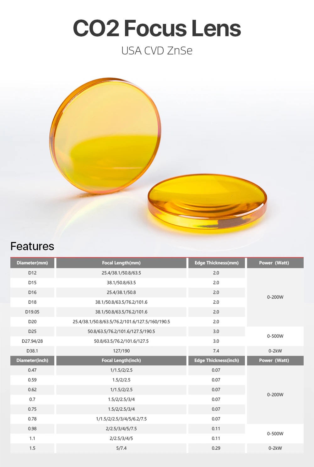 Фокусная линза США CVD ZnSe DIA 12 15 18 19, 05 20 FL 38, 1 50 8 63 5 76 2 101, 6 127 мм для лазерного гравировального станка CO2