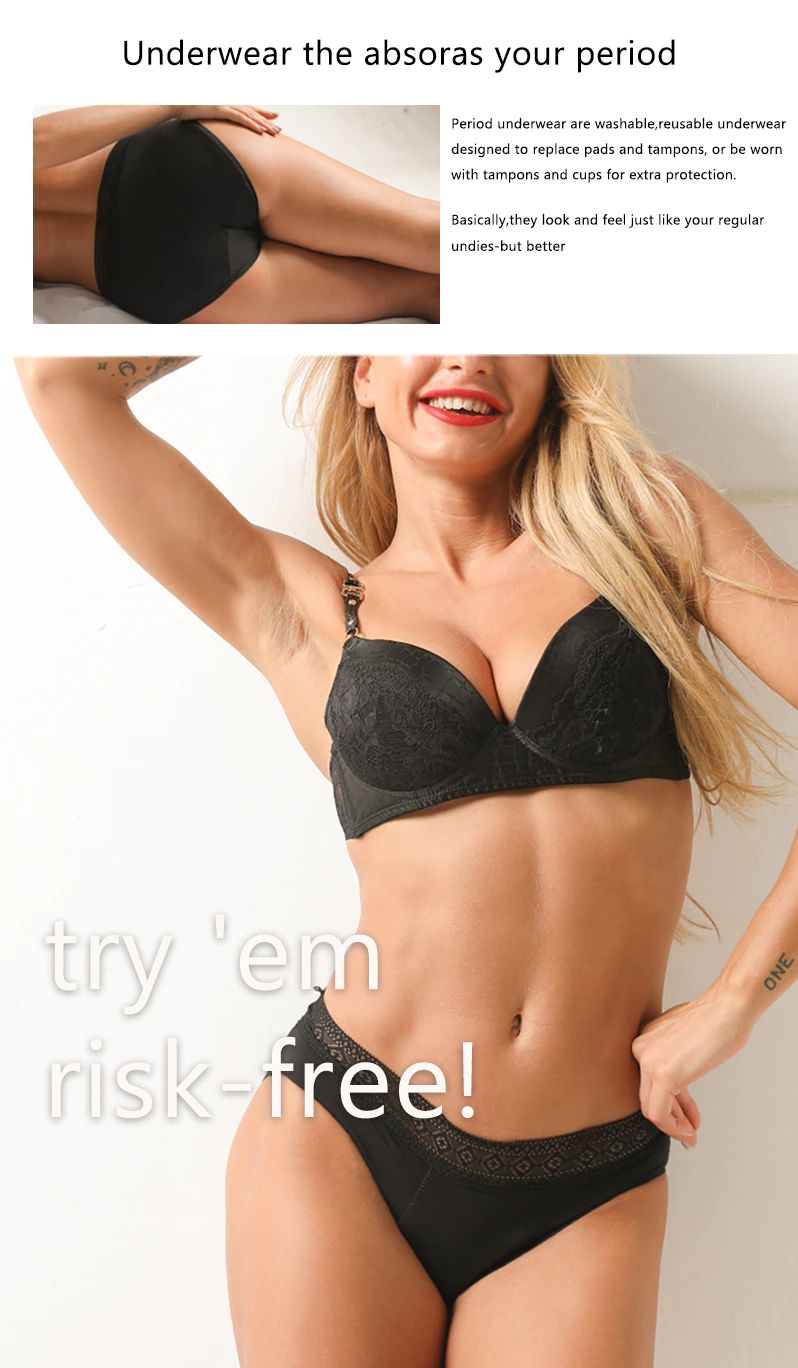 Четыре слоя герметичного черного менструального женского нижнего белья