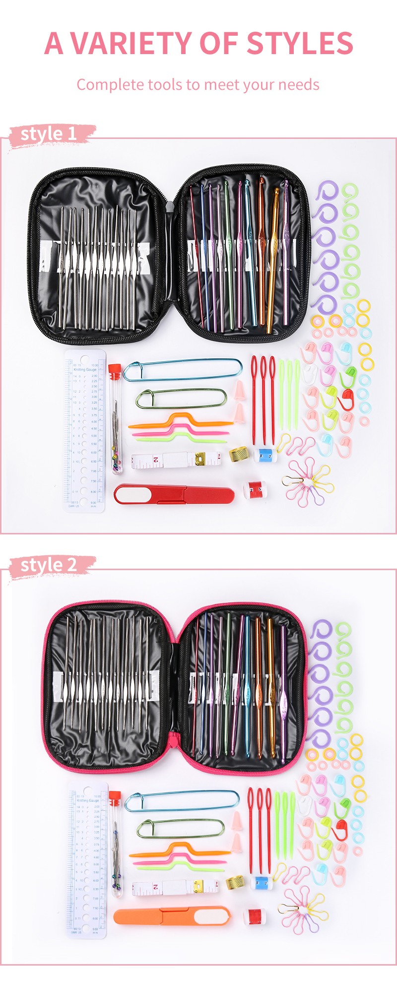 Полный набор вязальные крючки разных размеров спиц крючок для вязания ножницы держатели для стежков набор для шитья с сумкой