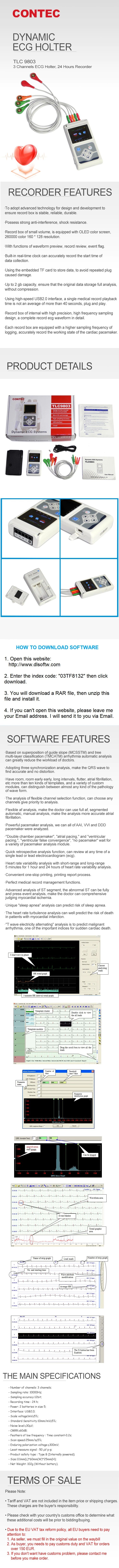 Оригинальный Contec 3 Каналы Ecg Holter, Ekg Holter, Динамическая Система Контроля Экг, 24-Часовой Рекордер Экг Tlc9803