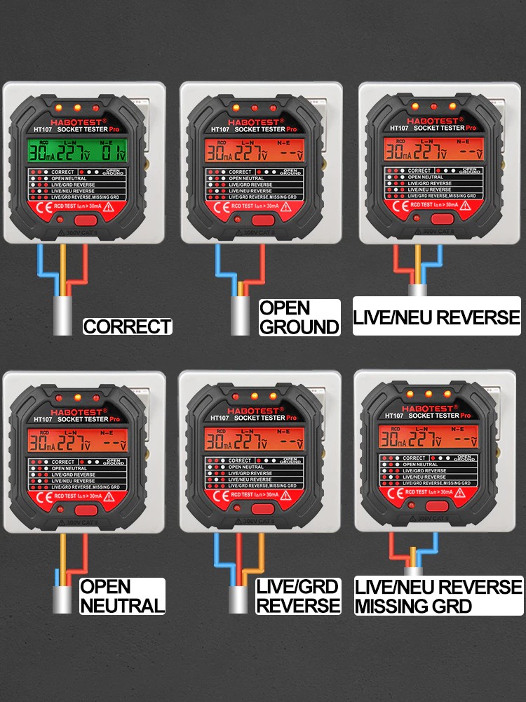 Habo тест на гнездо тест er Pro тест на напряжение RCD 30mA детектор гнезда Великобритания ЕС вилка заземления нулевой линии штекер полярность проверка фазы