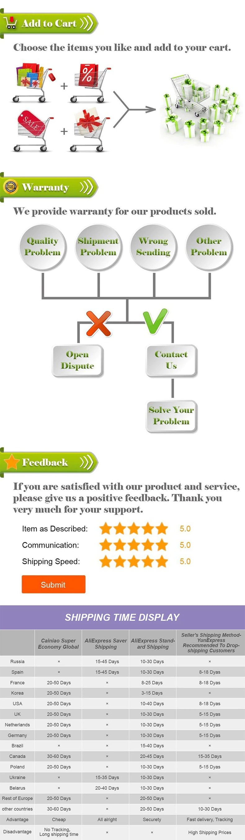 - Расчетная доставка от 5 до 9 рабочих дней.