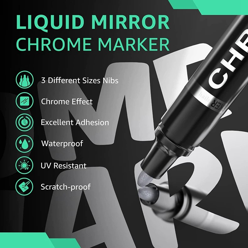 【Зеркальный хром finish】этот маркер на спиртовой основе, высоко пигментированные Специальные чернила создает постоянно глянцевое Настоящее зеркало и очень Непрозрачный эффект, который никогда не может быть достигнут обычным маркером.