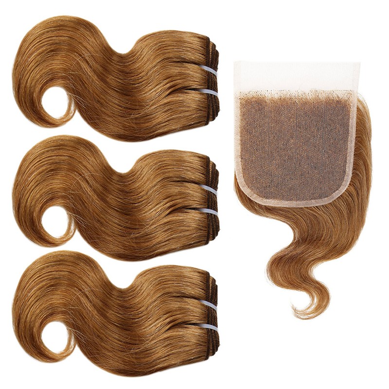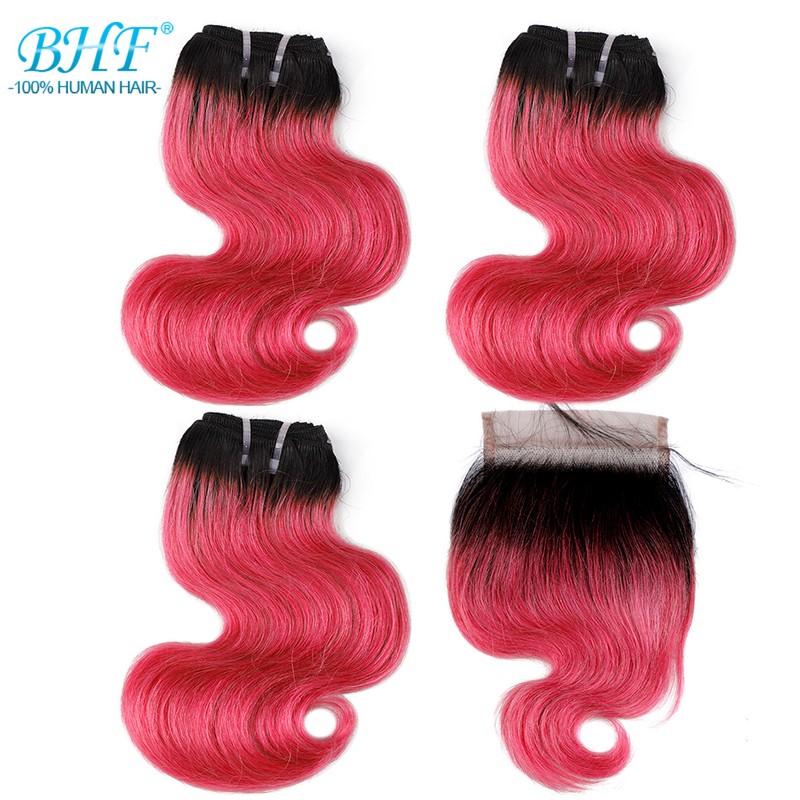 BHF 100% человеческие волосы объемная волна 3 пряди с закрытием бразильские волосы Remy блонд короткий боб парик стиль 50 г в комплекте с 2x4 closre и 4x1 закрытие