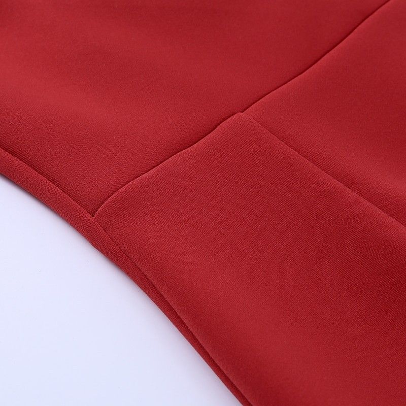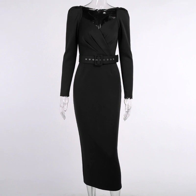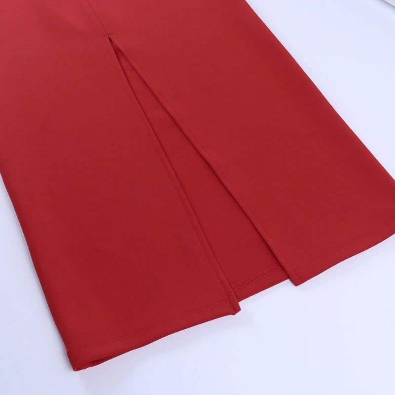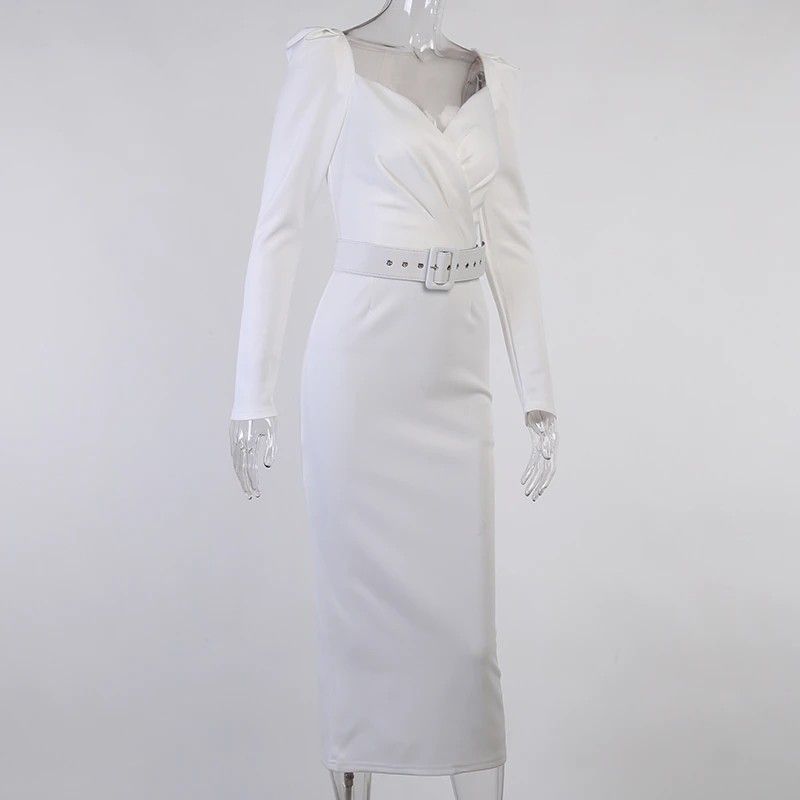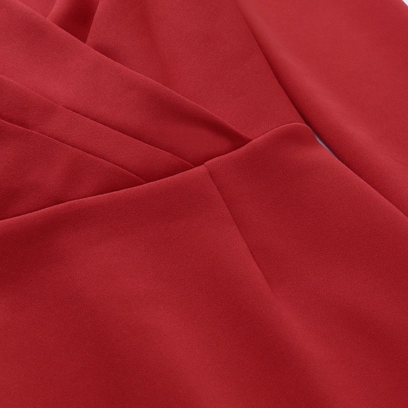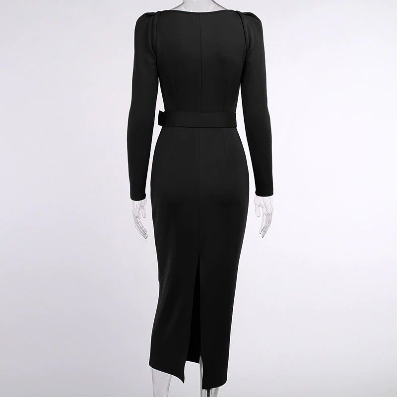 Instahot/Элегантные Вечерние Платья Для Женщин, Облегающее Платье-Карандаш До Середины Икры С V-Образным Вырезом И Длинным Рукавом, Повседневные Офисные Женские Однотонные Красные Платья С Пышными Рукавами Последний
