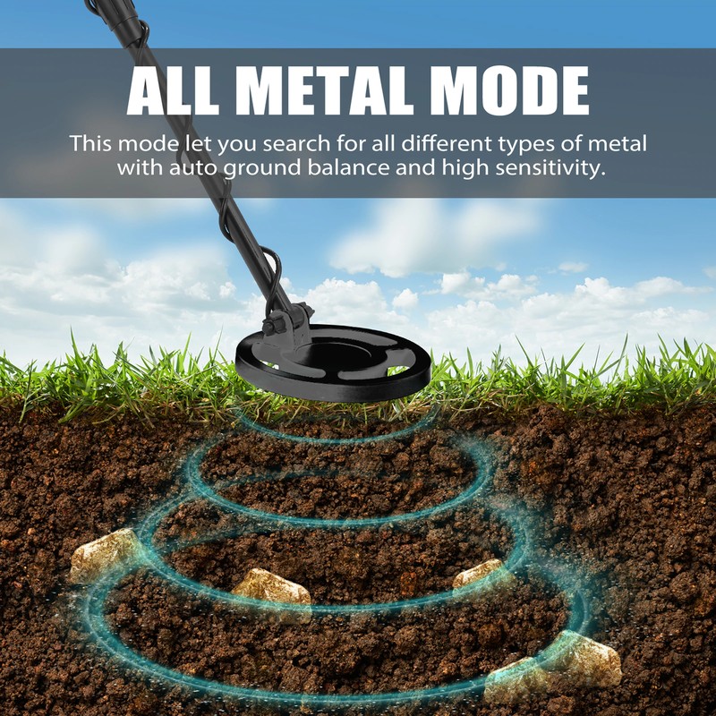 Металлический режим:Этот режим позволяет вам искать все различные типы металла с автоматическим балансом земли и высокой чувствительностью.