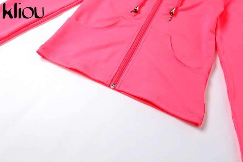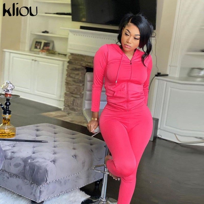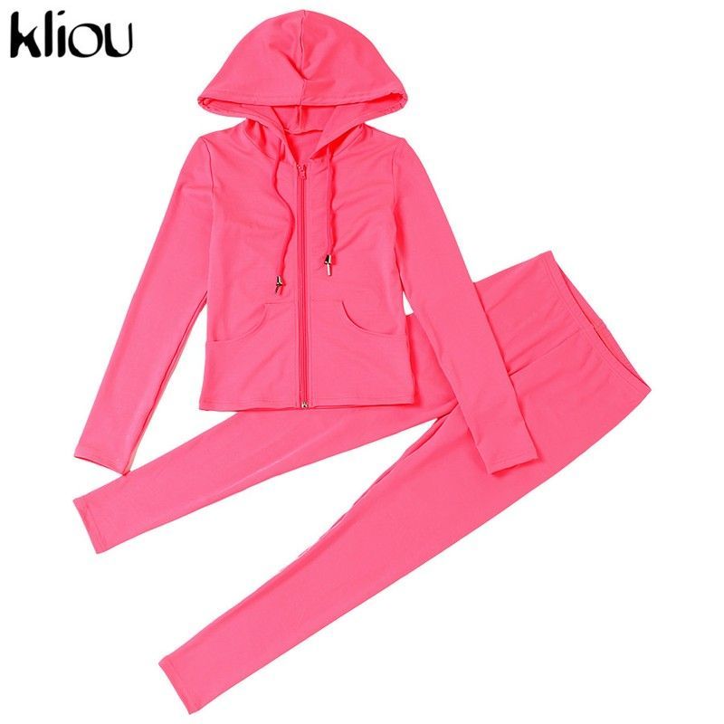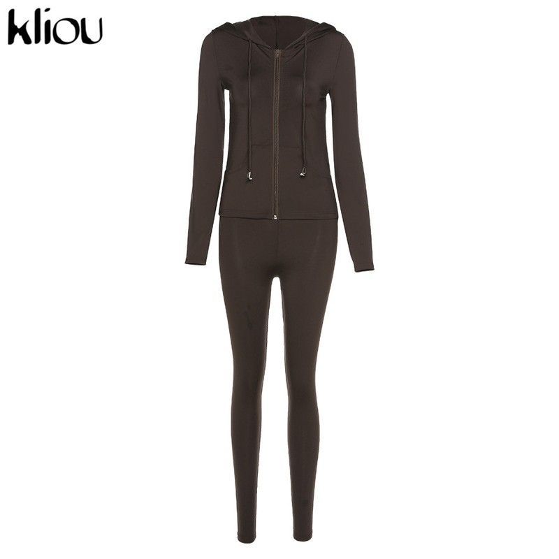 Kliou Осенний Комплект Из Двух Предметов, Женские Спортивные Куртки С Длинными Рукавами И Капюшоном На Молнии И Карманами + Леггинсы, Комплекты Для Тренировок, Эластичная Одежда