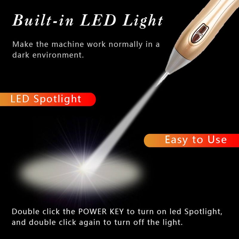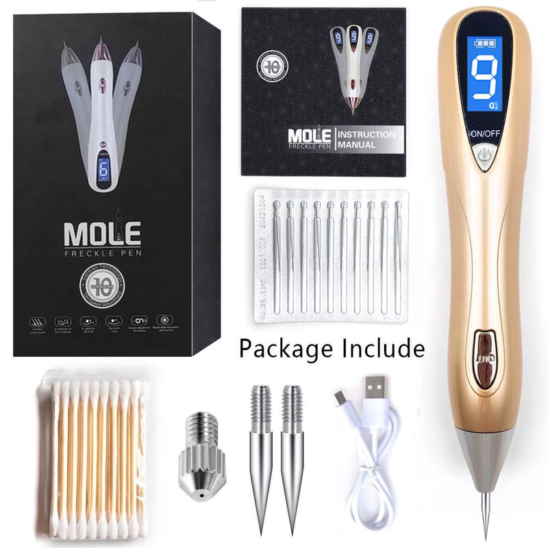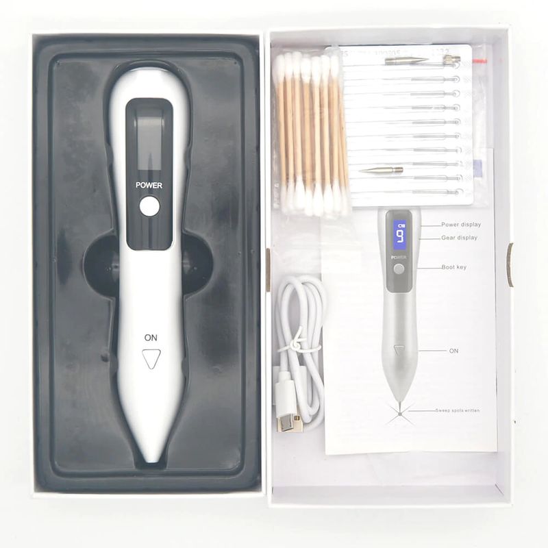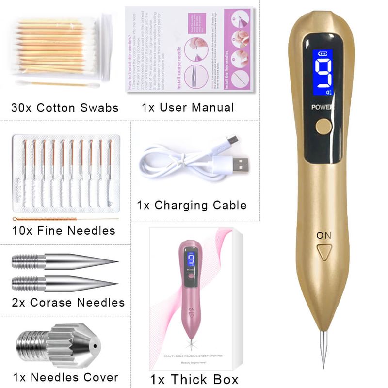 Посылка 1 ручка прибор для удаления родинок 30 ватных палочек 10 тонких игл 2 x грубые иглы 1 x крышка иглы 1 x USB-кабель для зарядки 1 x Руководство пользователя Посылка вочная коробка > Со светодиодным прожектором > 9 регулируемых уровней > С ЖК-дисплеем