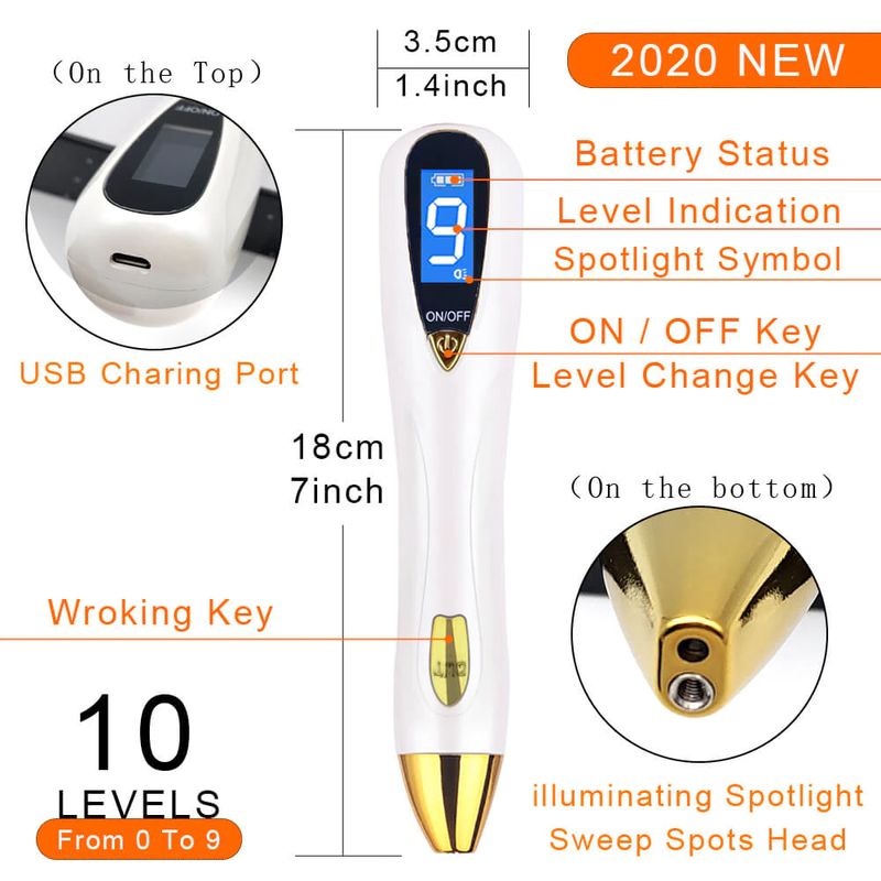 [Для чего это?] -это устройство для ремонта тегов для кожи предназначено для домашнего использования. You will для удаления темных пятен/веснушки/невус/пигментные пятна/бирки на кожу/бородавки/татуировки/родинки/пигментация кожи в любое время у вас дома. Вам больше не нужно платить высокую цену за время и деньги. [Безопасно и эффективно]-удаляет пятна, не обжигая кожу. Использование высокотехнологичных, электрических функций карбонизации ионов для мгновенного подметания бородавок, пигментных пятен, плоских бирок кожи и т. д. удаление может быть достигнуто быстро без кровотечения, безопасных и побочных эффектов медицинских косметических результатов. [Обновление 2020]-это устройство для восстановления тегов кожи со светодиодным прожектором и 9 уровнями интенсивности, вы можете настроить высокотехнологичную ручку для обработки различных условий кожи. Нижний уровень рекомендуется при пигментных пятнах и веснушках. Более сильный уровень предлагается для использования на бирках кожи. В зависимости от состояния может потребоваться несколько процедур. Потрясающие результаты можно достичь без кровотечения и при быстром заживлении кожи. [Простота в использовании]-устройство для удаления этикеток на кожу легко использовать, люди могут использовать это устройство для ремонта этикеток на кожу в любом месте в любое время. 2. Подключаемый, в шкаф и удобный для переноски, время зарядки для работы более пяти часов. Кроме того, наша служба поддержки клиентов будет обслуживать вас 24 часа [Гарантия]-если вы не удовлетворены этим устройством для ремонта тегов, пожалуйста, не стесняйтесь обращаться в нашу службу поддержки клиентов, мы предложим замену. Посылка 1 ручка прибор для удаления родинок 30 ватных палочек 10 тонких игл 2 x грубые иглы 1 x крышка иглы 1 x USB-кабель для зарядки 1 x Руководство пользователя 1 Толстая коробка > Со светодиодным прожектором > 9 регулируемых уровней > С ЖК-дисплеем