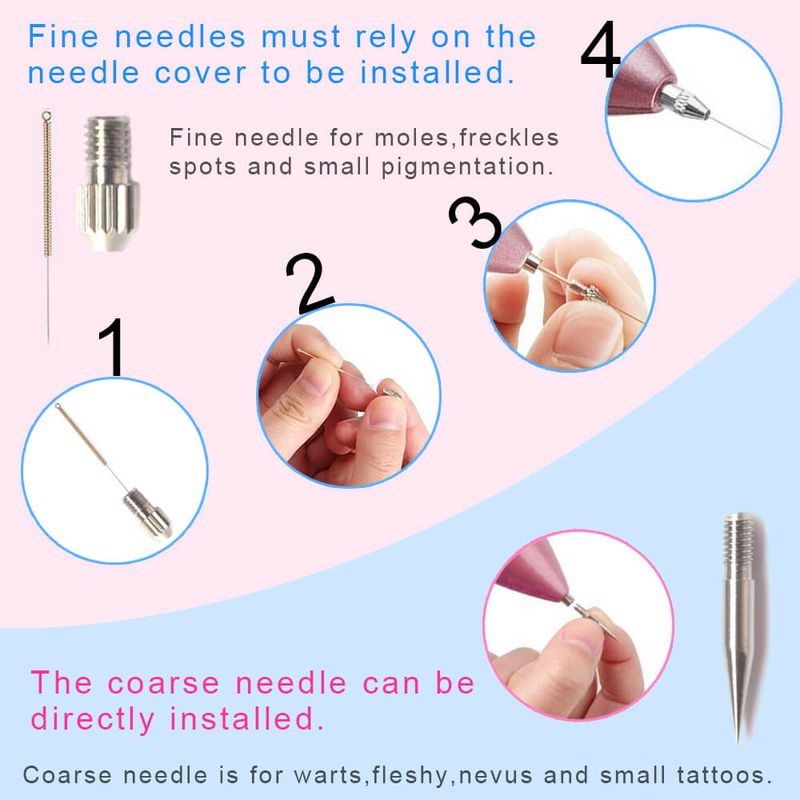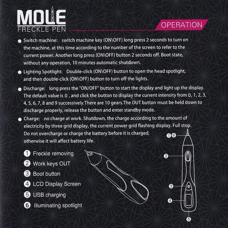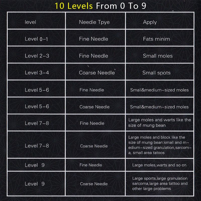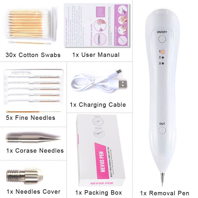 Посылка 1 ручка прибор для удаления родинок 30 ватных палочек 5 тонких игл 1 x грубые иглы 1 x крышка иглы 1 x USB-кабель для зарядки 1 x Руководство пользователя 1 x упаковочная коробка > 3 регулируемых уровня > Без ЖК-дисплея