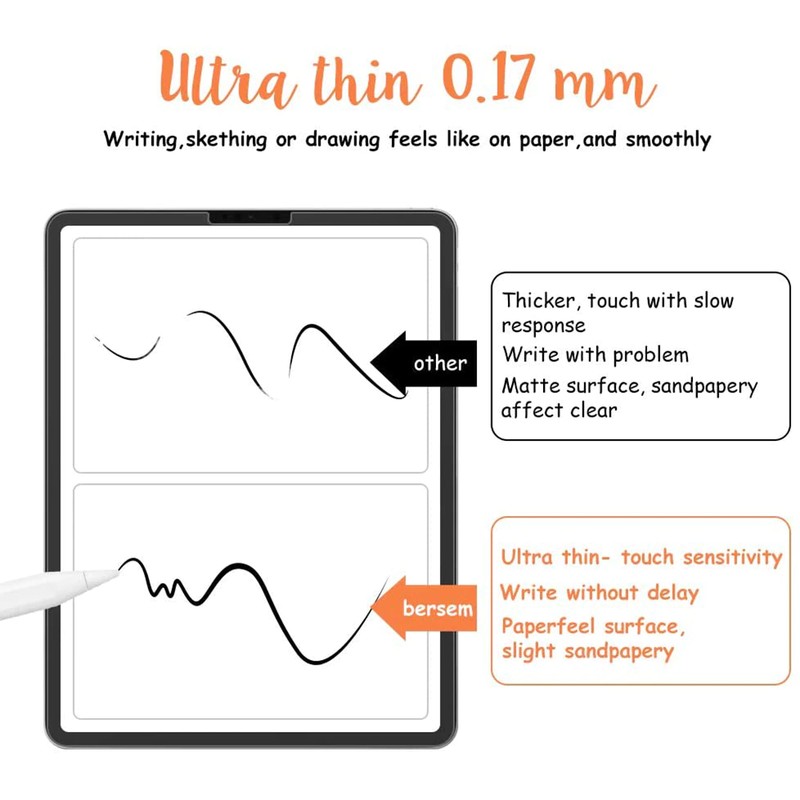 Защитная пленка для экрана на бумаге, как будто вы пишете на бумаге, предлагает как касание бумаги, трение и ощущение. Он предлагает вам естественное и реальное ощущение, достаточно гладкий и отзывчивый. В основном он используется для рисования, письма или набросков.