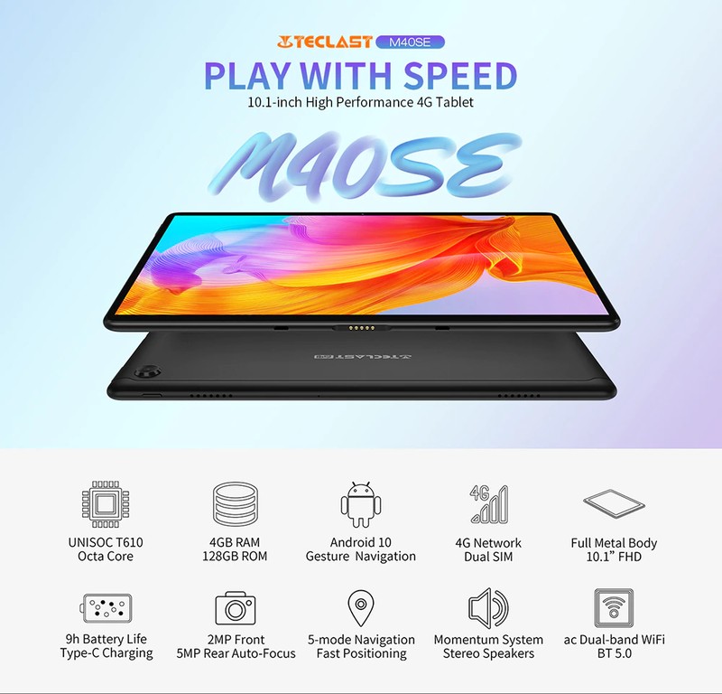 Teclast M40SE планшет на Android 10, 1, восемь ядер экран 1920 дюйма, 4 Гб + 1200 ГБ