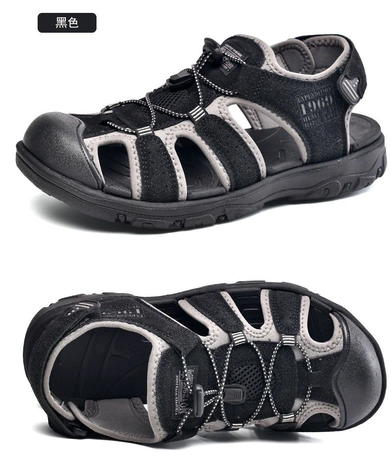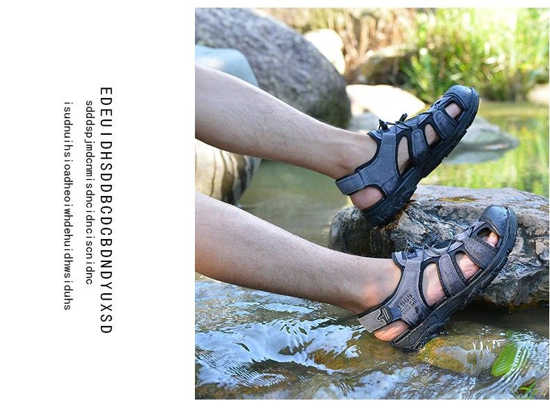 Сандалии Мужские Кожаные, Бычья Замша, Повседневная Уличная Обувь Пляжная Обувь Римские Сандалии, Лето Новейшие