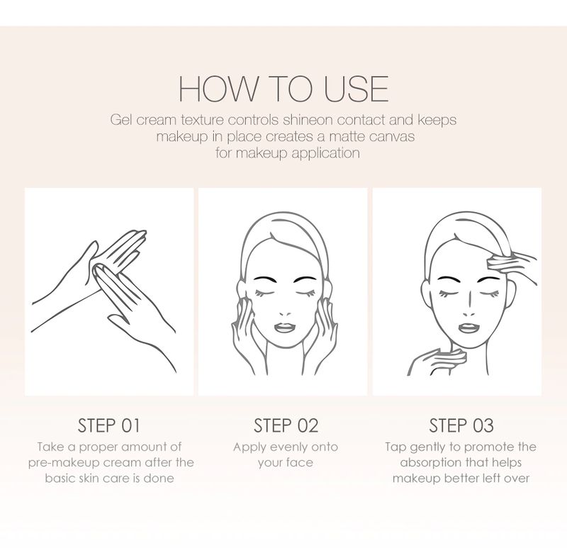 (3) Способ применения: Добавьте две щеки в верх, низ и низ. Нажмите на пять точек и откройте или расправьте их. Это занимает немного времени, чтобы впитать, потому что это гель. Ваше лицо будет очень гладким и освежающим после впитывания. Наконец Нанесите тональный крем. Тогда ваш макияж будет более естественным матовым и не какиевым.