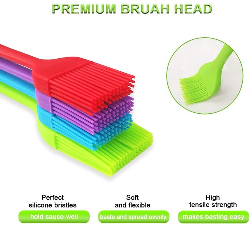 3. Многофункциональная гибкость-Вы получите 3,5-дюймовую кисть для набивки и три 3,5-дюймовых кисти для выпечки, больше не беспокойтесь о перекрестном ароматизаторе. Силиконовые кисти для выпечки способны удерживать хорошее количество жидкости и равномерно распределять. Отлично подходит для гриля, жарки, выпечки, мяса, выпечки, тортов и многого другого!